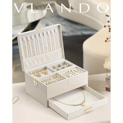 ジュエリー ボックス 大容量 トリプル ドロワー 回転式 トレイ付き ネックレス リング イヤリング ブレスレット ジュエリー オーガナイザー アクセサリー ストレージ ギフト 誕生日 女性 イボリー
