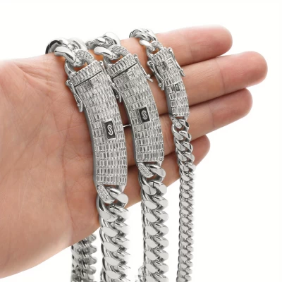 メンズジュエリー タイトanium ポリッシュ キューバン暗号チェーン マイクロインレイ合成ジルコニウムバックルネックレスヨーロッパとアメリカ